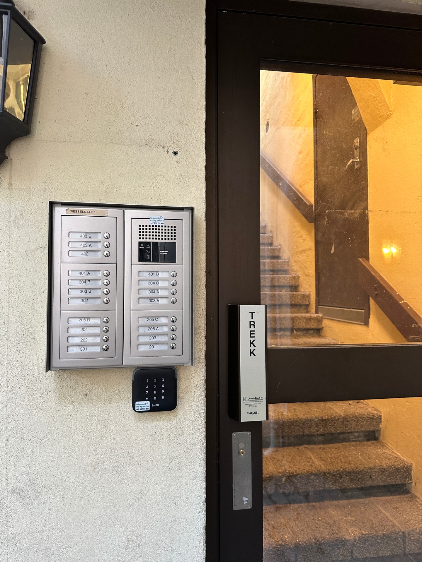 - 3 skalldører/oppgangsdører som kan åpnes med kode, mobil eller brikke